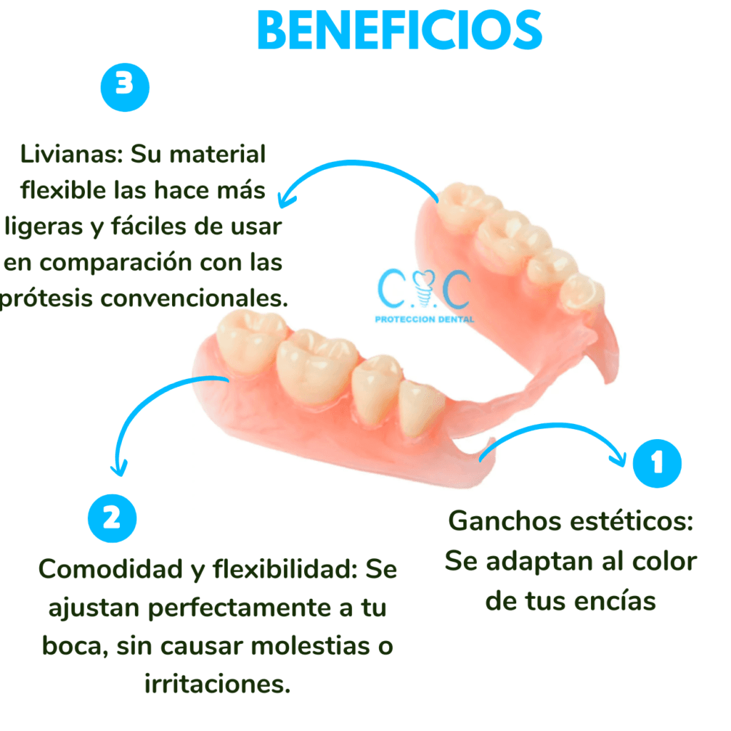 En Protección Dental, ofrecemos prótesis removibles flexibles, una solución que combina comodidad y estética. Fabricadas con un material ligero y flexible, son más cómodas y visualmente mas estéticas.